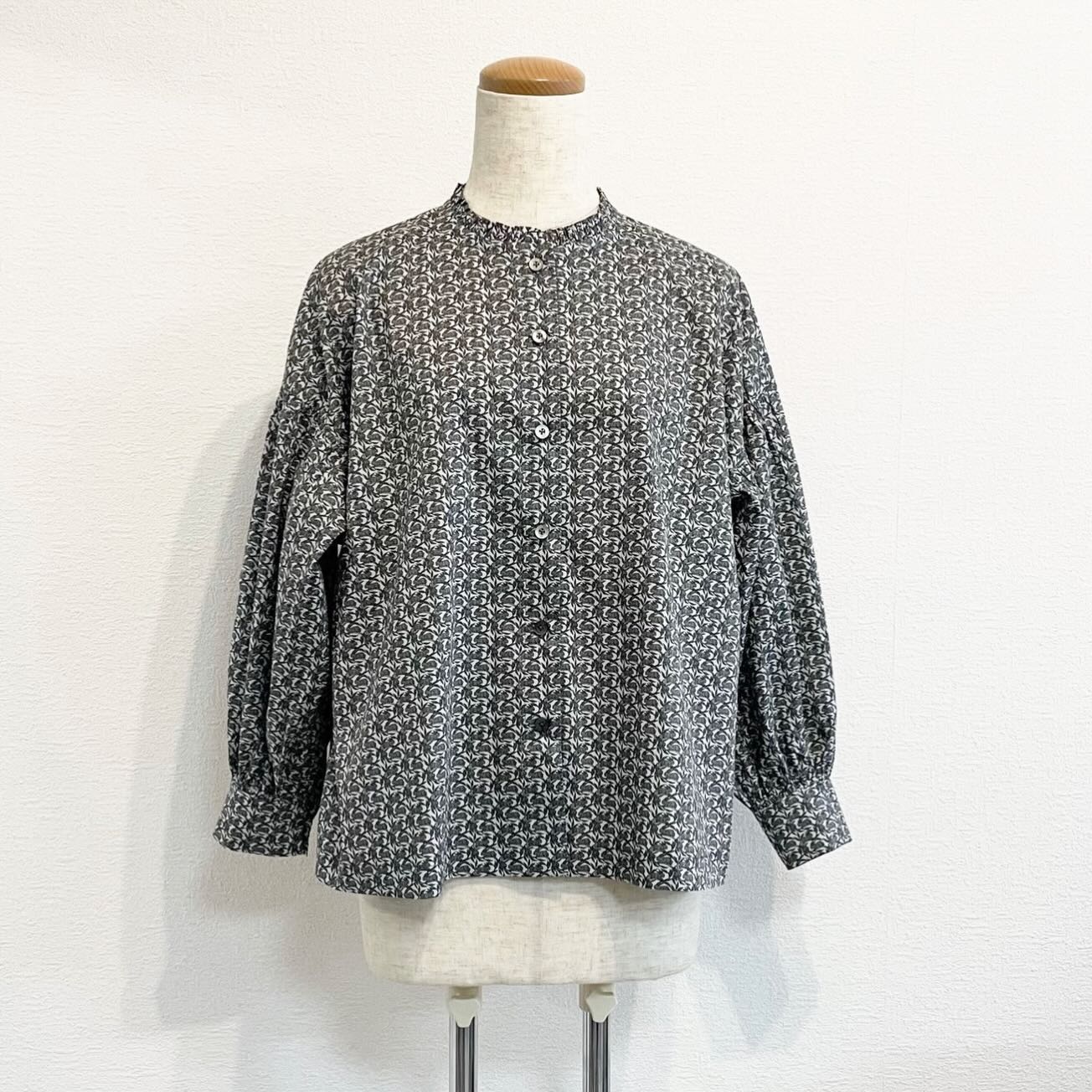 ホビーショップに行くとたくさんの素敵な生地が並び、ワクワクが止まらないのですが、やはりLibertyコーナーに足を踏み入れると制作意欲を掻き立てられます。特にシーズンごとに出される新作は王道柄を含め、色合いや柄の大きさなどその都度デザインの拘りを感じずにはいられません。色鮮やかに並べられたLiberty生地から「この生地でワンピースを作るんだったらこうゆうデザインかな」などと考える時間もまた至福のひととき。そして当店で最も使用しているLiberty生地がタナローンという上質な素材。綿100%の薄地でありながら、しっかりとした織で作られた生地はとても上品な質感と扱いやすさを兼ね備えています。肌触りの良さや着用時の快適さ、ご自宅でのお手入れのしやすさもLiberty生地の魅力の一つです。着心地の良さを求め、他ブランドも少しづつ進めています。作り手が拘った生地は、そのシーズンに合った快適さや暖かみをくれます。当社セレクトの生地から生まれた一着が素敵なご縁となりましたら幸いです。